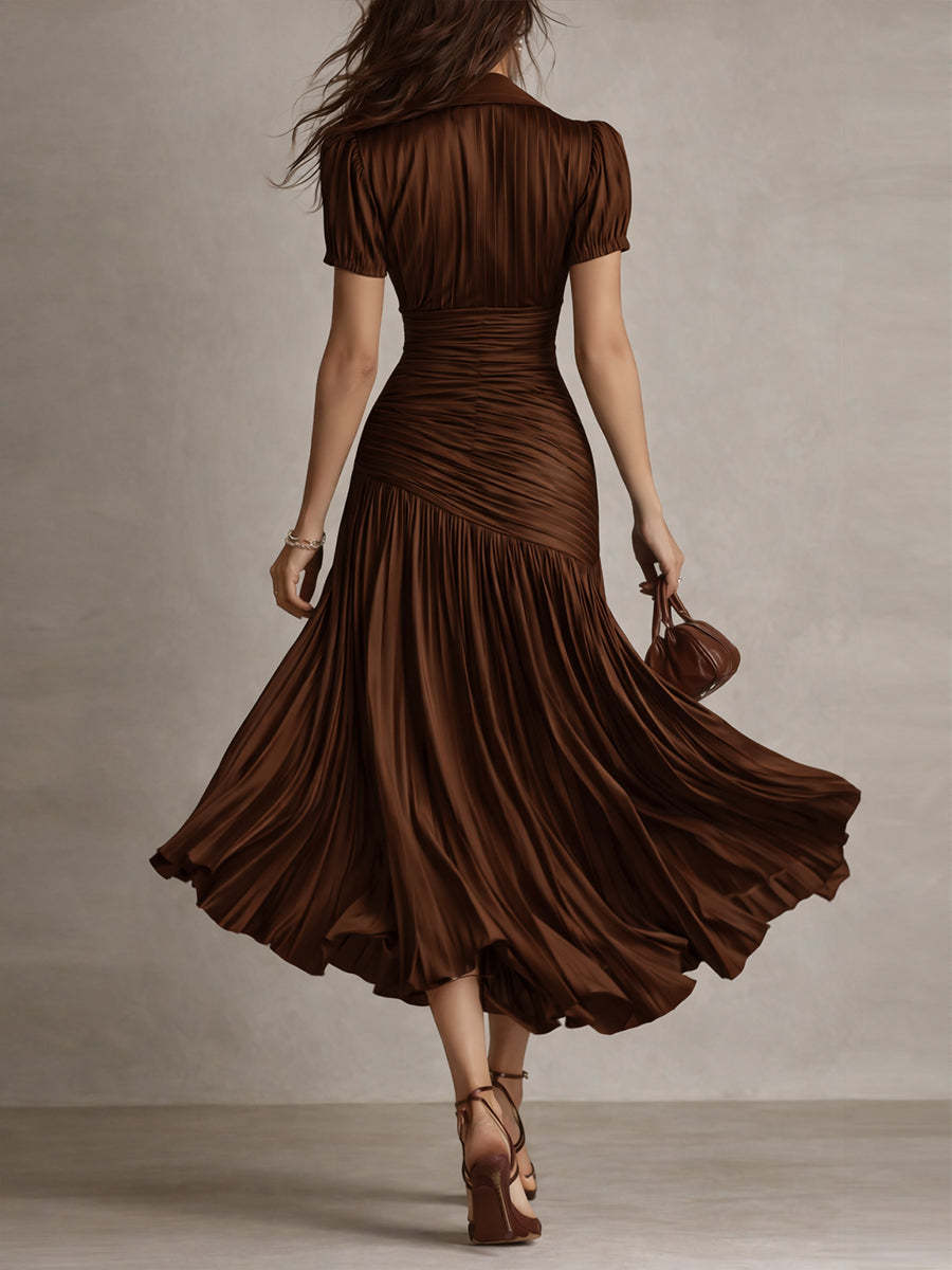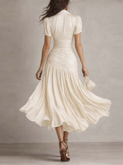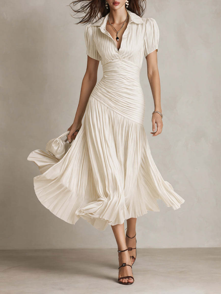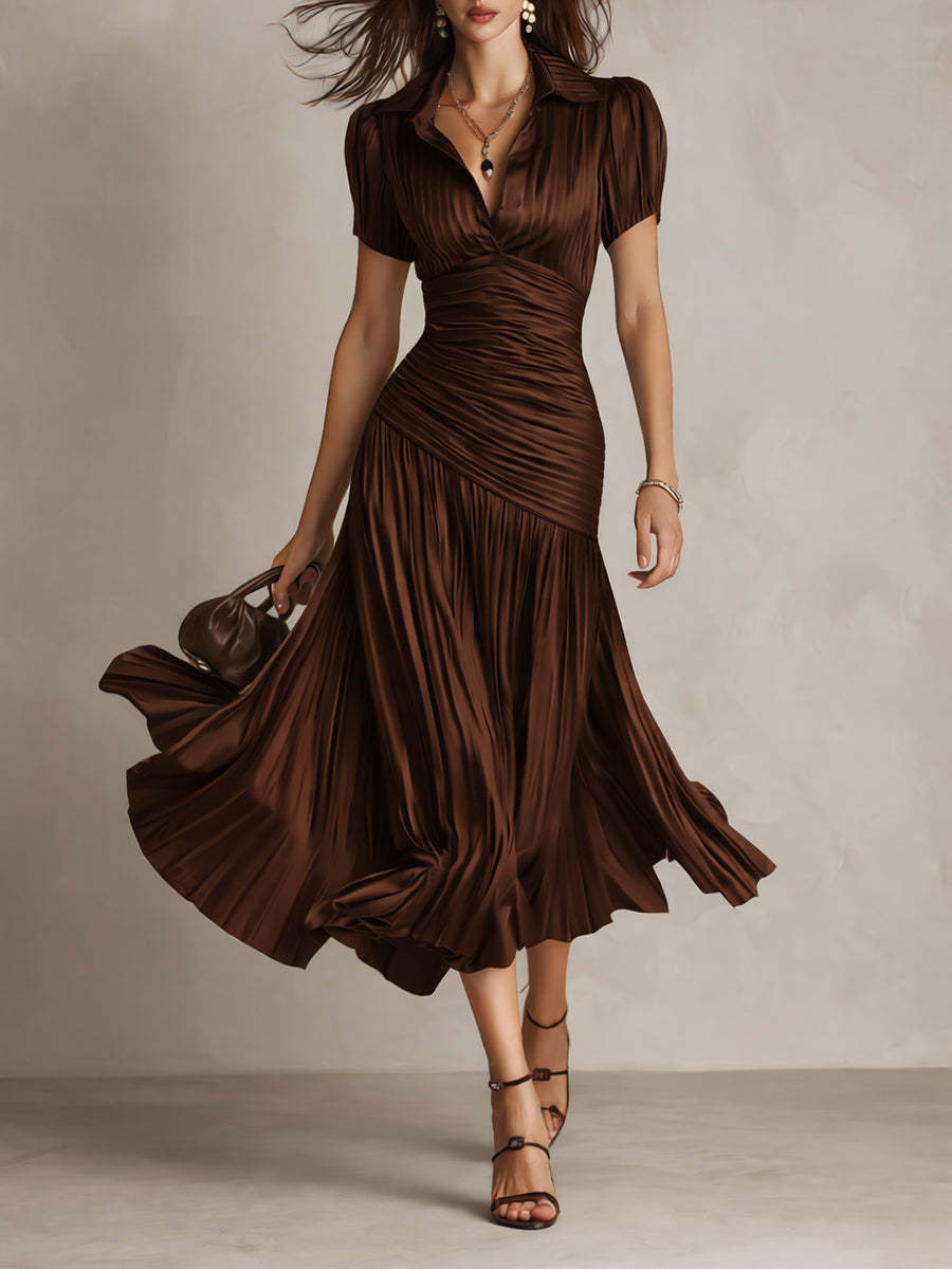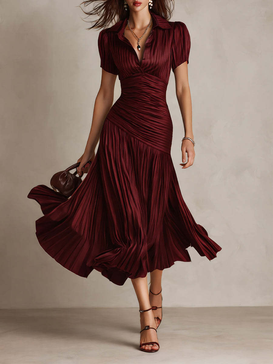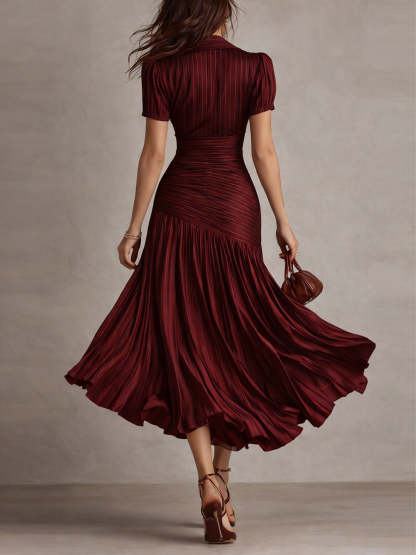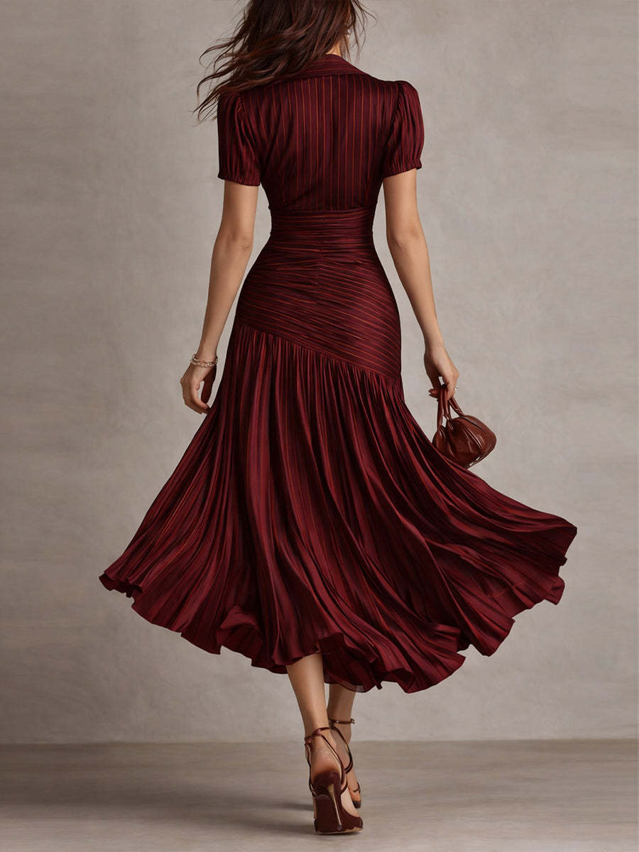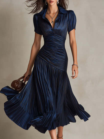 Retro Striped Satin Pleated Bodycon Midi Dress