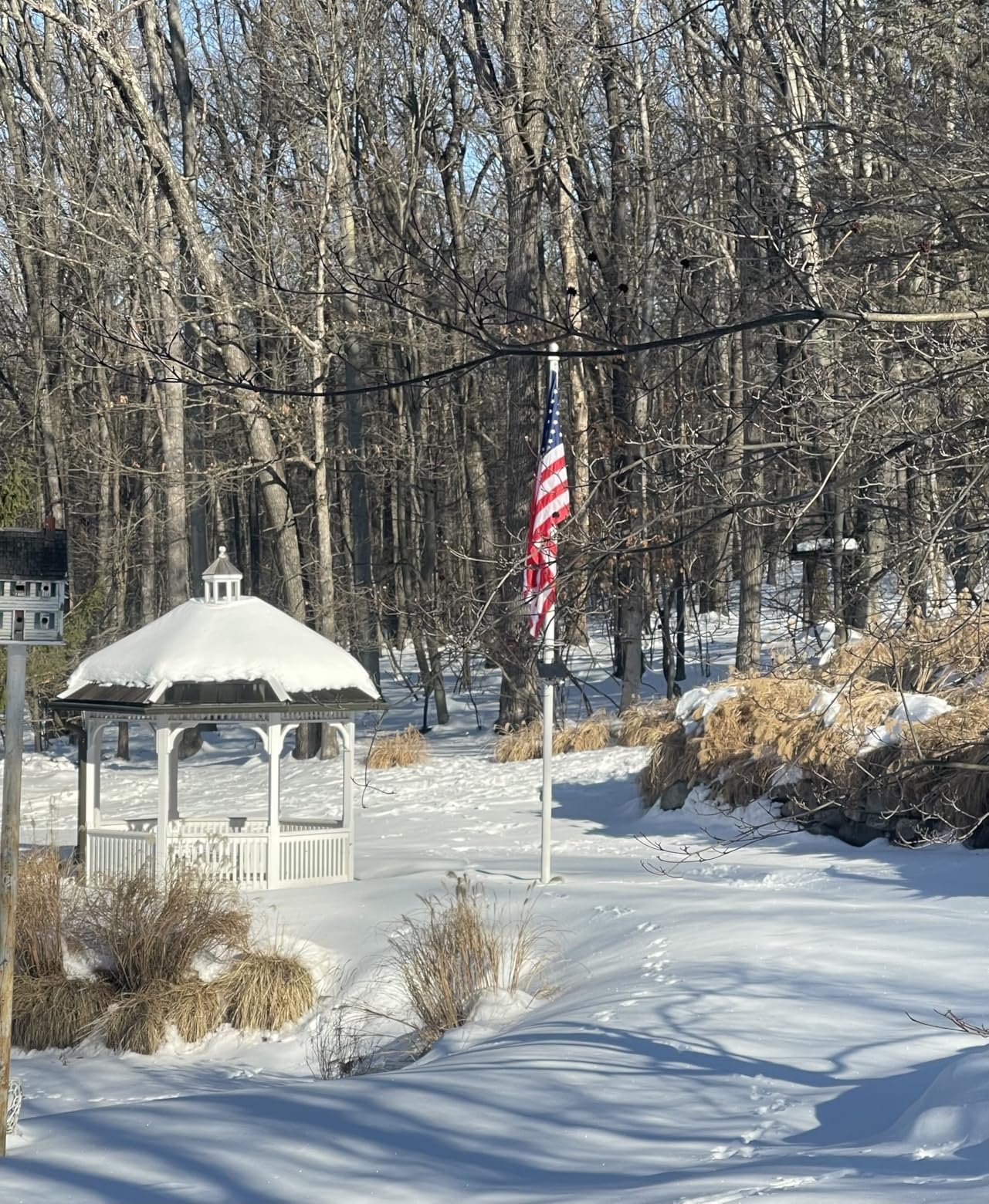 Perfect size for the front porch. The flag flies beautifully and holds up well even on windy days.